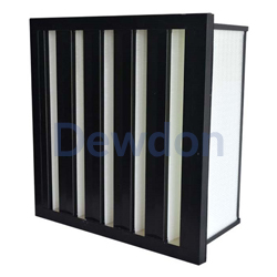 V-bank HEPA filters widely used in high-volume airflow facilities, such as power plants. They are also used as pre-filters for final stage filters or ULPA filters.
