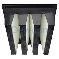 Construction: V-Bank HEPA filters use a diameter of 0.1um~5um super fine Glass fiber for media , that ensure the filters has lower pressure drop , more dust holding and longer service life. The fine fiberglass media pleated to some media packs, then several media packs and frame form a “V shape filter. The number of the “V” shape deter-mines the filter’s media area so that it influence on filter service life and pressure drop.